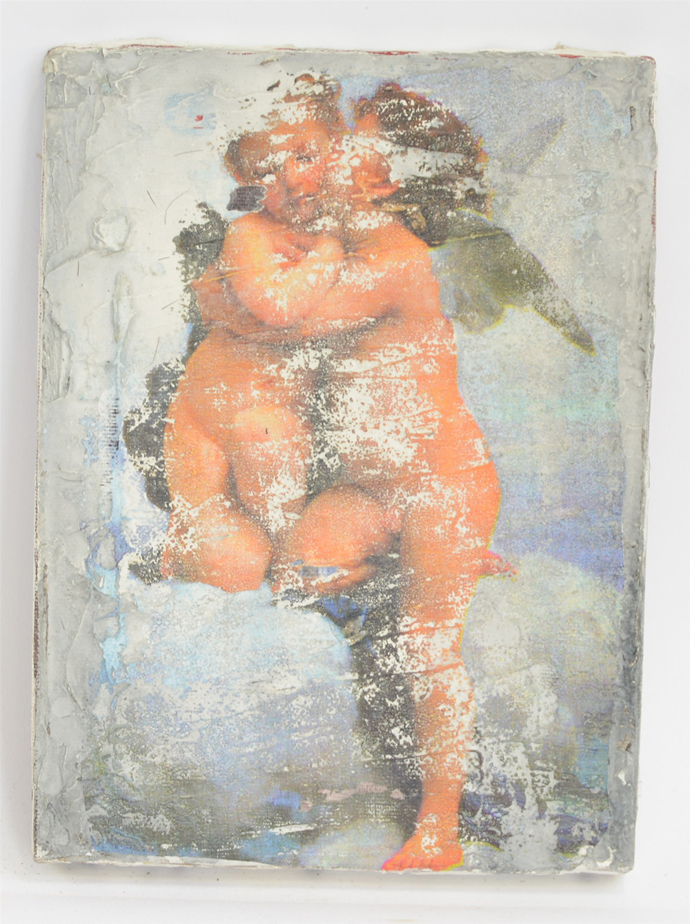 Ignoto "putti" tecnica mista su tela (cm 24x18) (difetti)