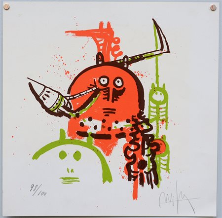 Wifredo Lam (Sagua La Grande 1902 - Parigi 1982) "Senza titolo" litografia policroma (cm 34x34) numerata 98/100 e firmata in basso a matita.