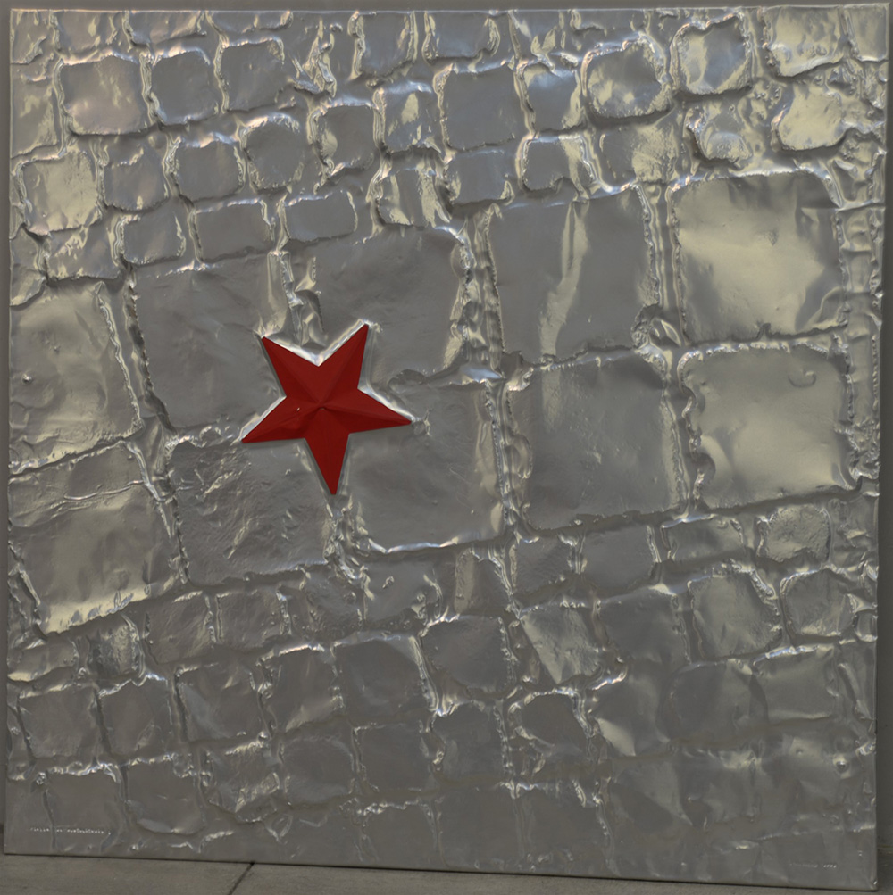 Baldo Diodato (Roma 1938) “Piazza di Montecitorio” 2002, tecnica mista su alluminio e legno(cm 123 x125) titolato, firmato e datato in basso. Inscritto, titolato, firmato, datato al retro ed etichetta con n. di archivio 438.