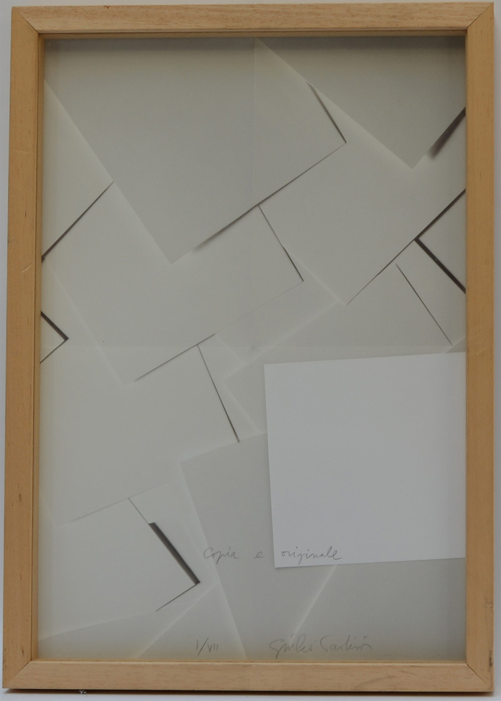 Giulio Paolini (Genova 1940) "Copia e originale" collage su stampa (cm 47x33). Firmato, titolato e numerato I/VII in basso a matita. In cornice