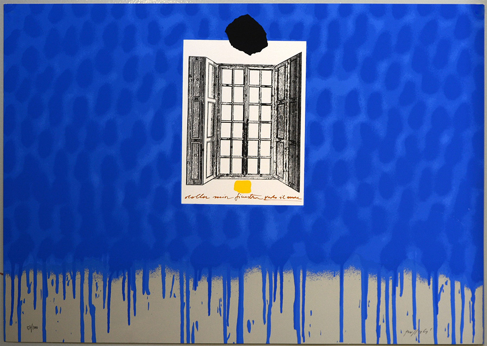 Concetto Pozzati (Vò 1935) "Dalla finestra vedo il mare" serigrafia (cm 48x68) numerata 57/100 e firmata in basso a matita.
