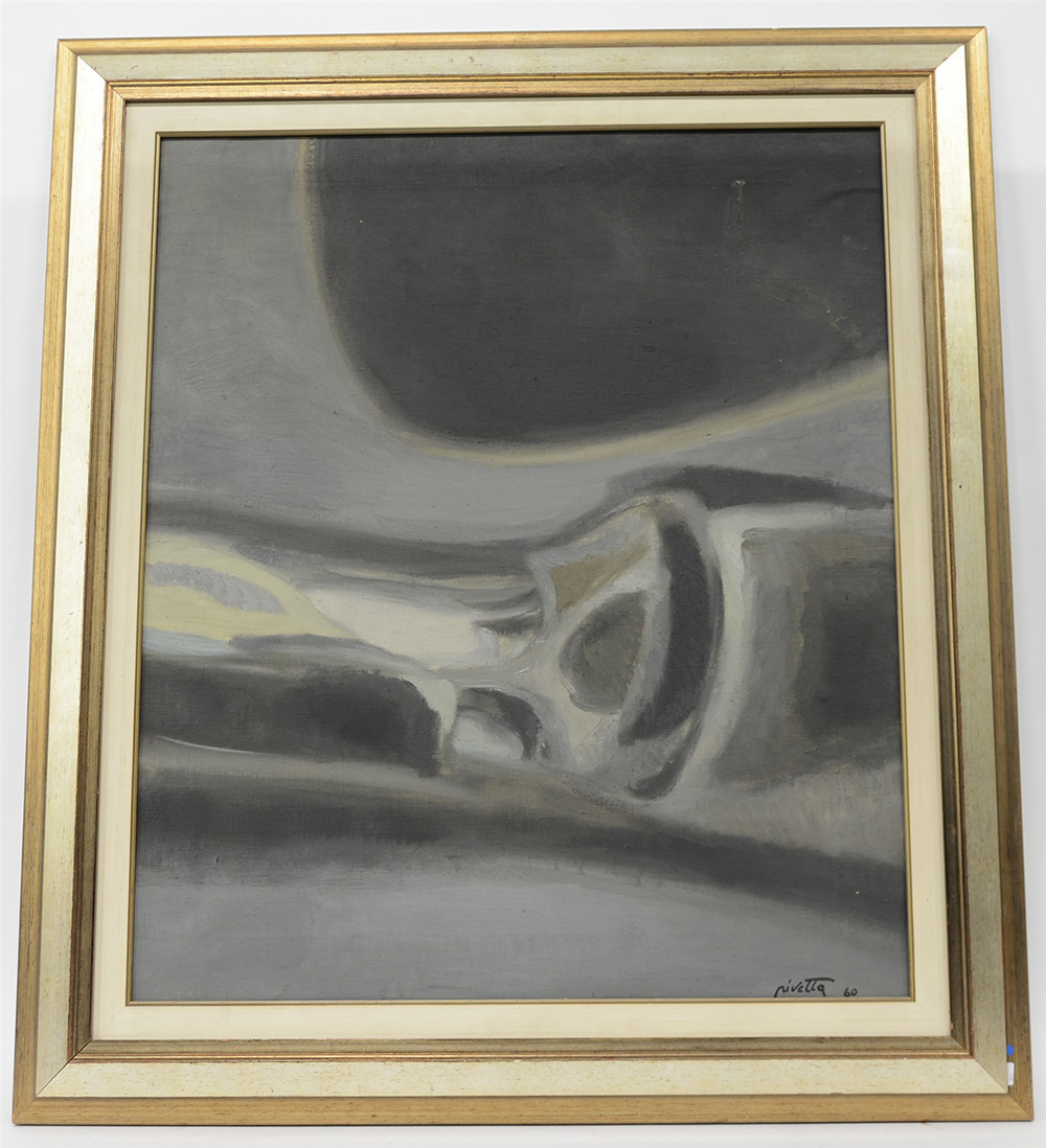 Pivetta Osvaldo. "Composizione" '60 acrilico su masonite (cm 60x70) firmato e datato in basso a destra in cornice