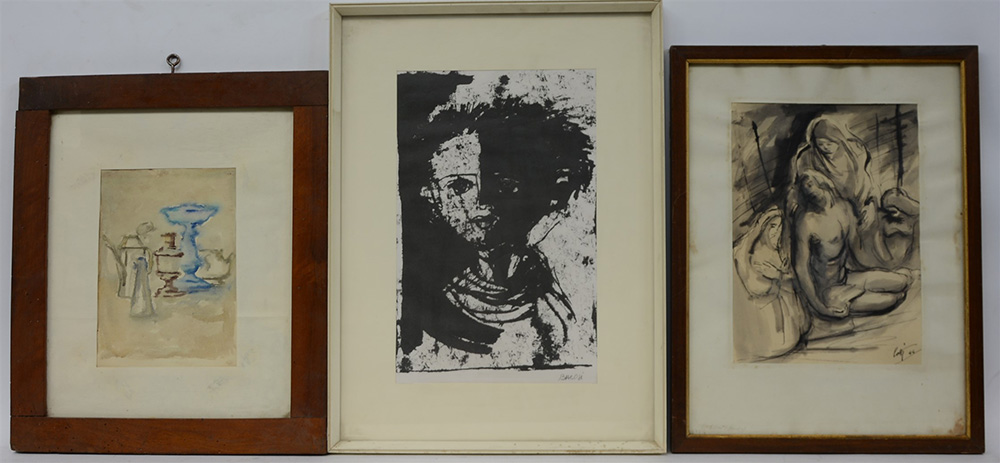 Lotto composto da tre tecniche miste su carta di autori moderni