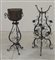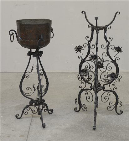 Lotto composto da due portavasi tripodi in ferro battuto, uno completo di...