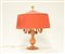 Manifattura di Murano. Lampada da tavolo a quattro luci a forma di candeliere. Paralume in tessuto rosso plissettato (h cm 48)(lievi difetti)