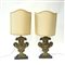 Coppia di lampade con facciata in metallo sbalzato e argentato a decoro...