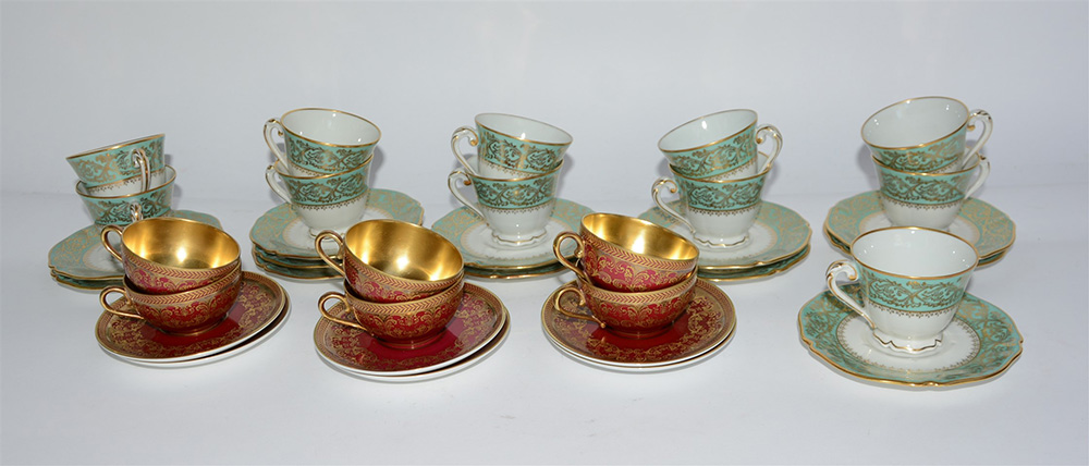 Lotto composto da un servizio da caffè Limoges in porcellana composto da 11 tazzine e 12 piattini e un servizio Rosenthal da sei (lievi difetti)