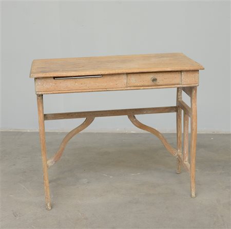Piccolo scrittoio rustico per bambini ad un cassetto con gambe mosse (cm 80x67x43) (difetti)
