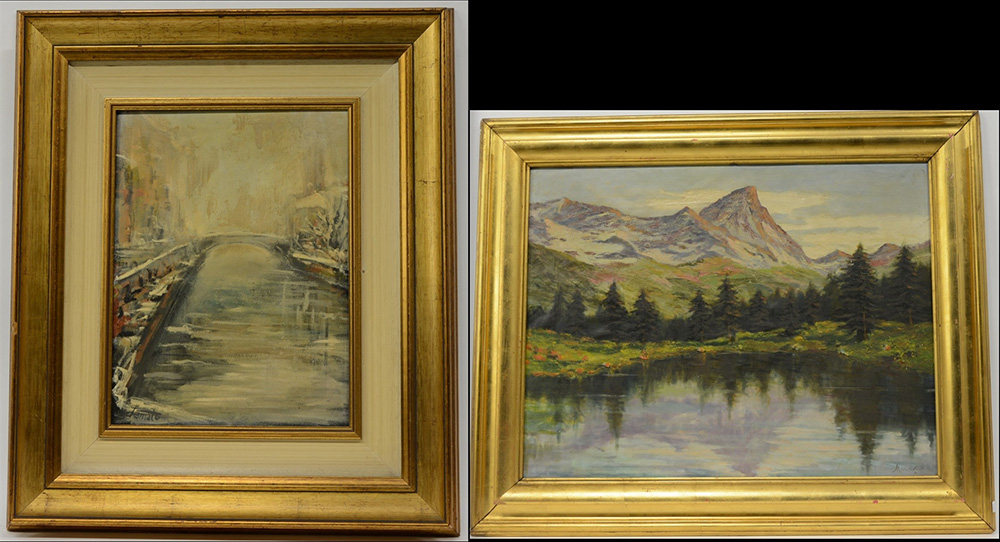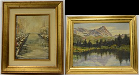 Lotto composto da due dipinti di autori e misure diverse. In cornici (difetti)