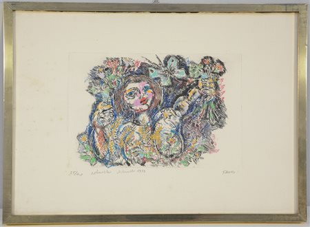 Piero Gauli (Milano 1916 - 2012) "Figura femminile con fiori" 1977,...