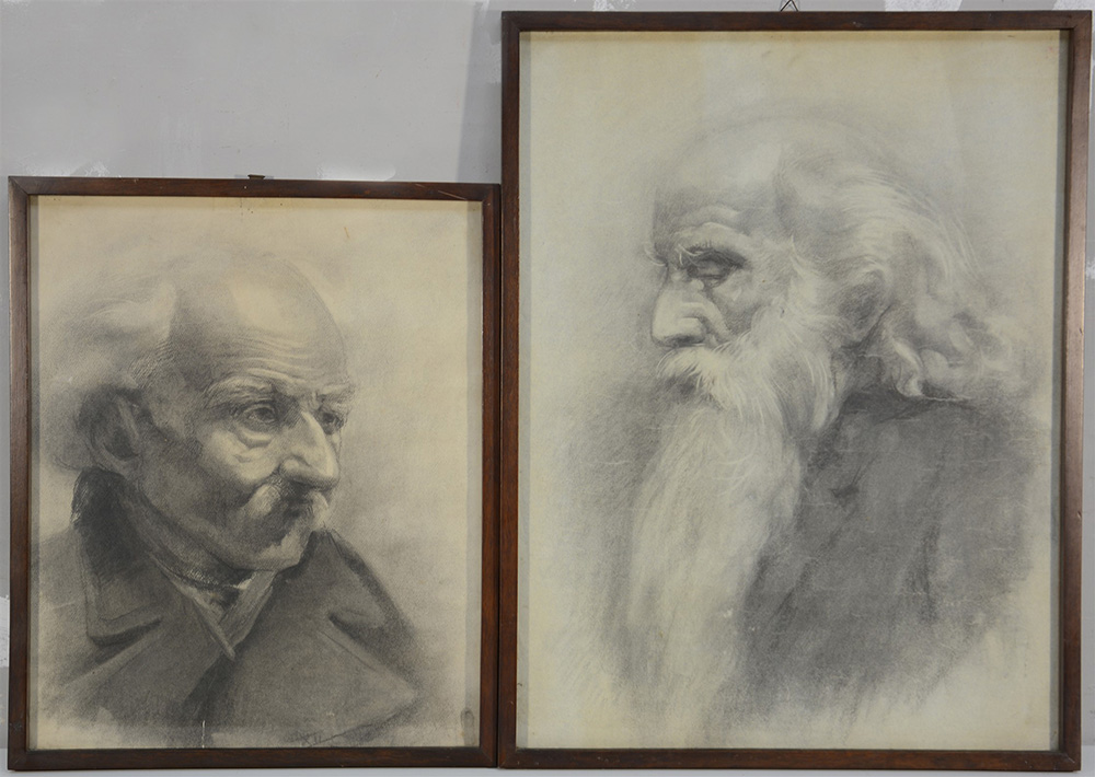 Ignoto, lotto di due disegni a matita raffiguranti ritratti maschili (cm 62x47 e 47x38), in cornici (lievi difetti)