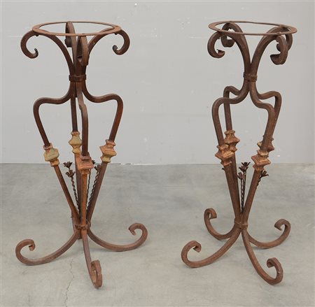 Coppia di basi in ferro battuto decorate a riccioli (h cm 100)(difetti)