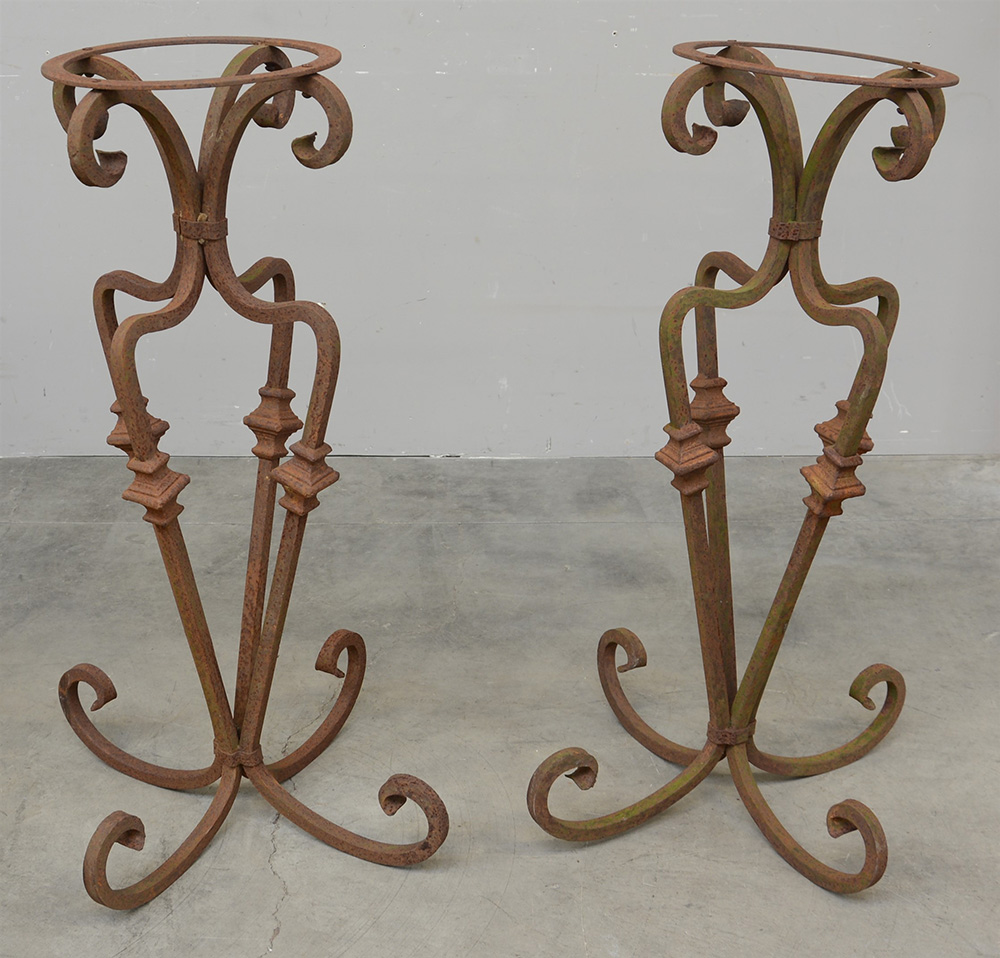 Coppia di basi in ferro battuto decorate a riccioli (h cm 100)(difetti)
