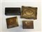 Lotto composto da tre cofanetti in legno di differenti decori ed uno ricoperto in pelle con impressioni a secco (difetti)