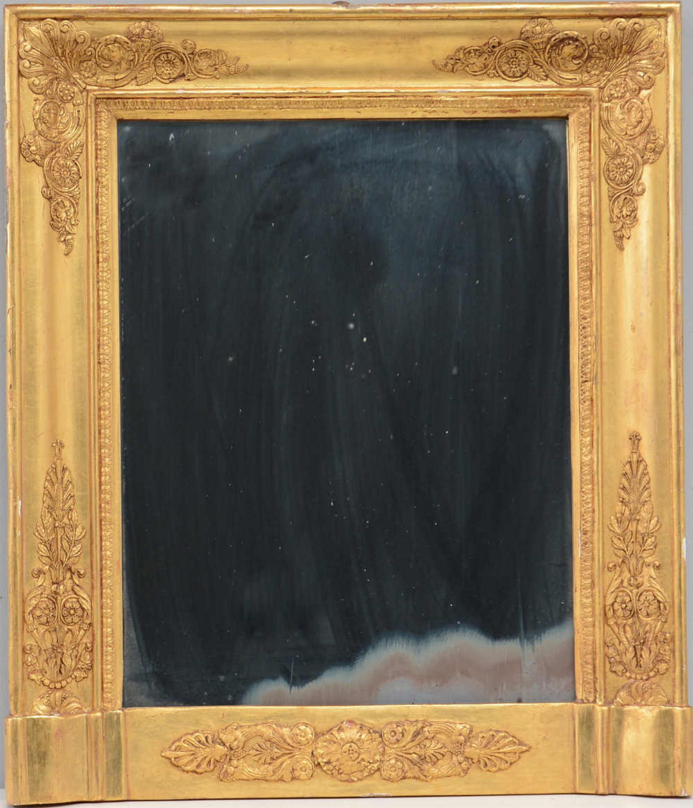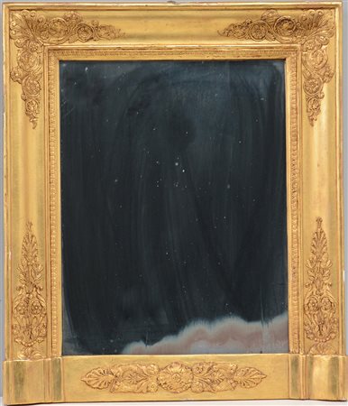 Specchiera rettangolare in legno dorato decorato a fregi (cm 64x55)(difetti)