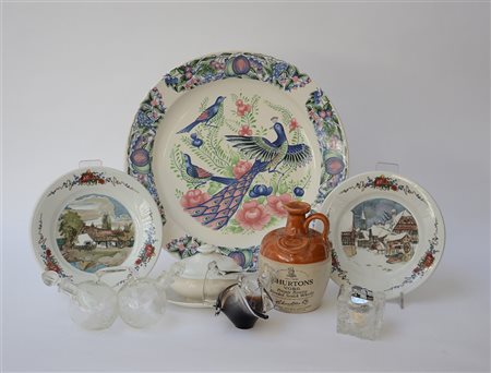 Lotto composta da tre piatti, una salsiera in ceramica, una brocchetta in...