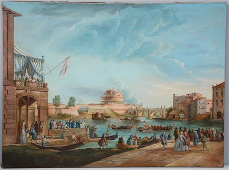 Ignoto "L'arrivo della regata" olio su tela (cm 90x122)(difetti)