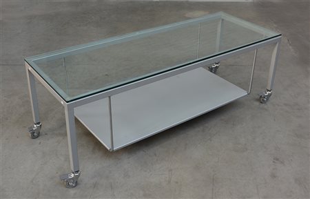 Tavolino da salotto rettangolare in metallo e vetro (cm 140x47x52)