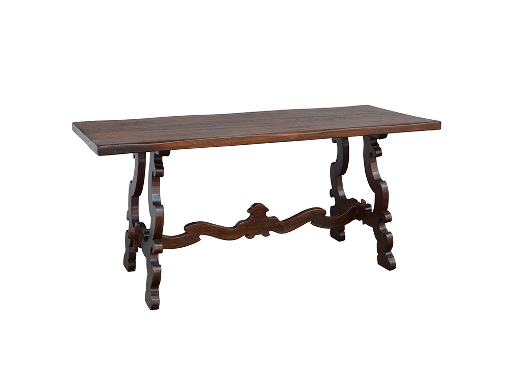 Tavolo fratino rettangolare con gambe sagomateriunite da traversa mossa (cm 180x80x70)