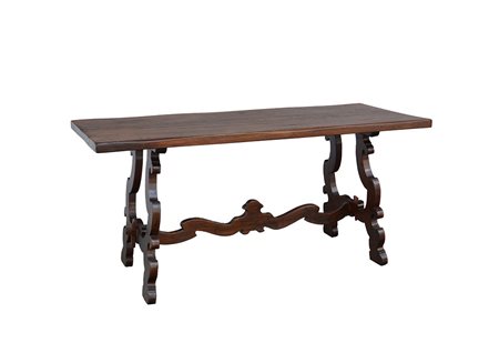 Tavolo fratino rettangolare con gambe sagomateriunite da traversa mossa (cm...