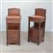 Coppia di comodini liberty in legno con intagli a foglie e fiori stilizzati,...