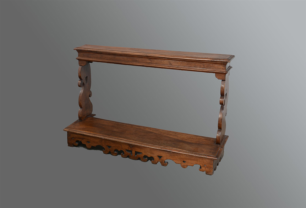 Panca-inginocchiatoio in noce con montanti e fascia sagomate, sec. XIX