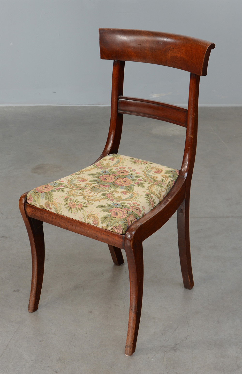 Sedia in mogano con schienale a giorno, gambe mosse