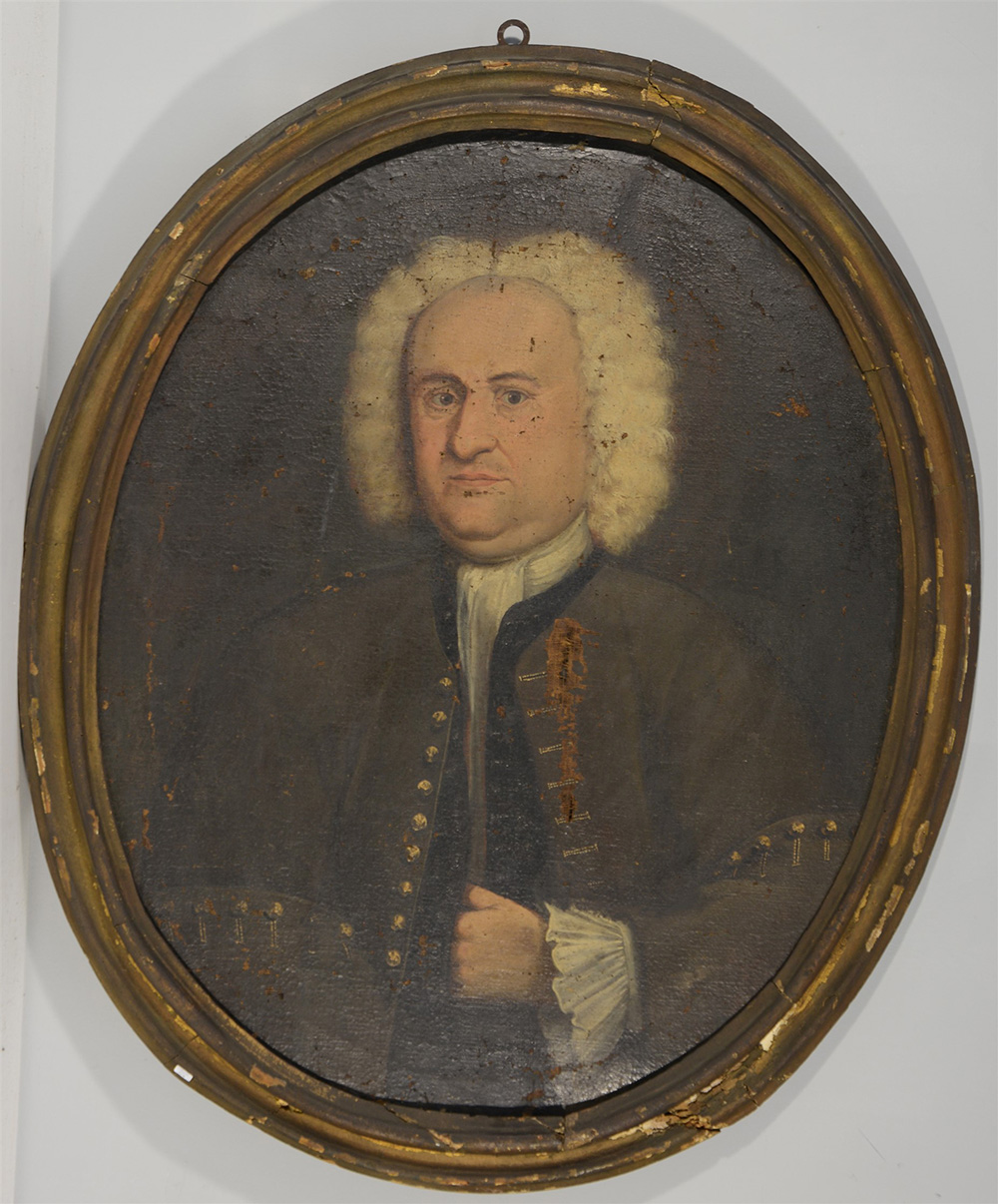 Maestro del secolo XVIII - “Ritratto di notabile”, olio su tela ovale (cm 85x69), iscritta al verso, in cornice (gravi difetti)