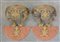 Coppia di capocieli da baldacchino in ferro e lamiera dorata, montati a...