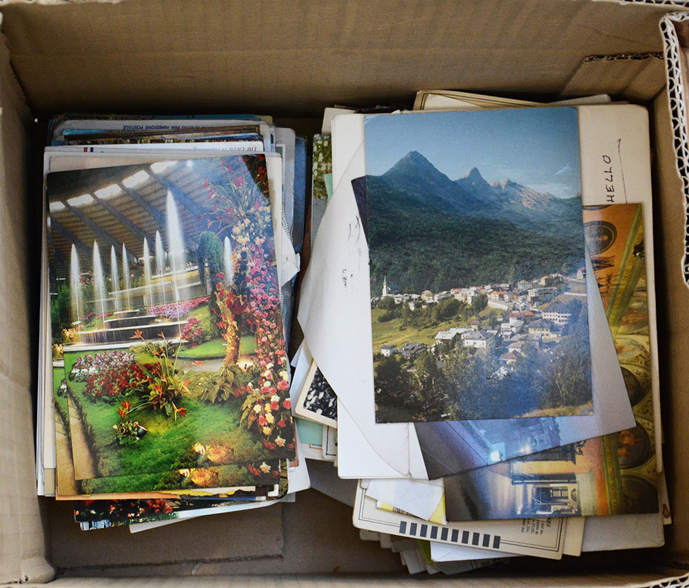 Cartone contenente numerose cartoline viaggiate e non (difetti)