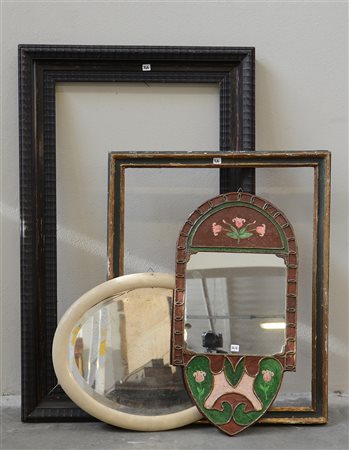 Lotto composto da due cornici e una piccola specchiera (difetti)