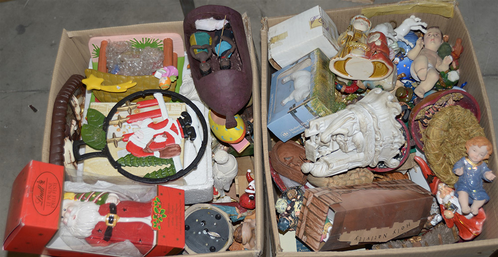 Lotto di due cartoni contenenti numerosi oggetti natalizi (difetti)