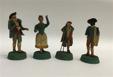 Arte popolare del secolo XIX- Lotto di quattro figure da presepe in...
