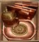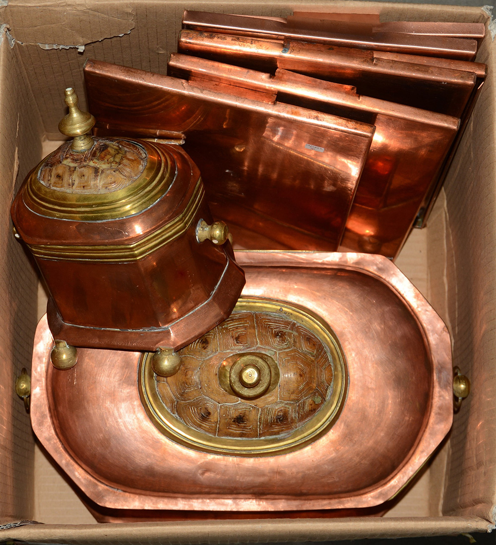 Scatolone contenente due contenitori con coperchio e sei rivestimenti in rame (difetti)