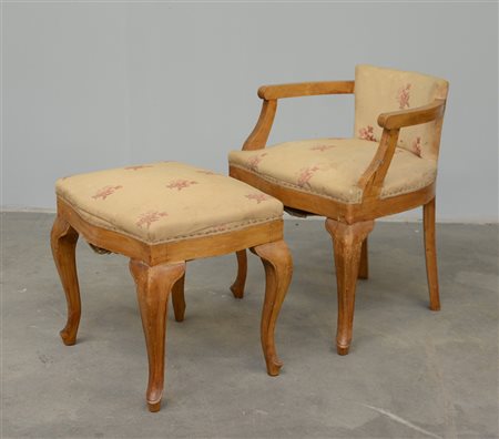 Lotto composto da una poltroncina da camera a schienale basso e un panchetto...