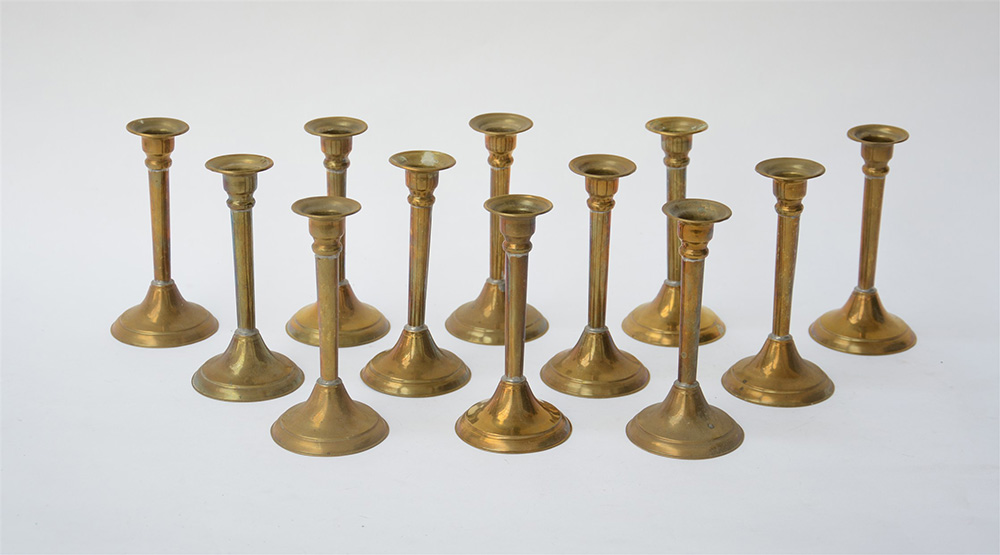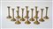 Gruppo di dodici piccoli candelieri ad una fiamma in metallo dorato (h cm 15) (difetti)
