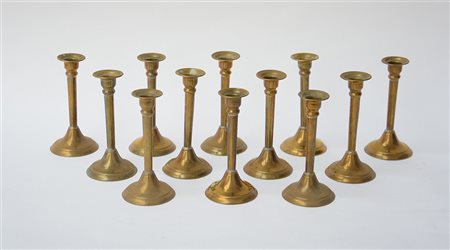 Lot 3652 | Gruppo di dodici piccoli candelieri ad una fiamma in metallo dorato (h cm 15)...