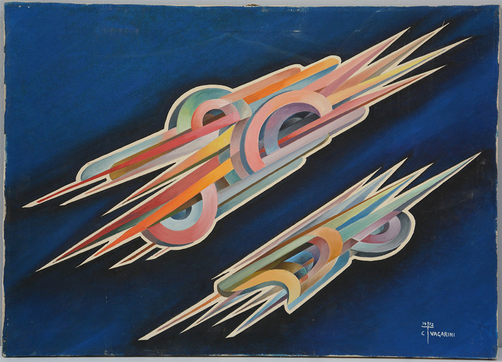 Ignoto "Composizione " 1972 olio su tela (cm 50x70) reca firma C. Vagarini e la data in basso a destra (difetti)