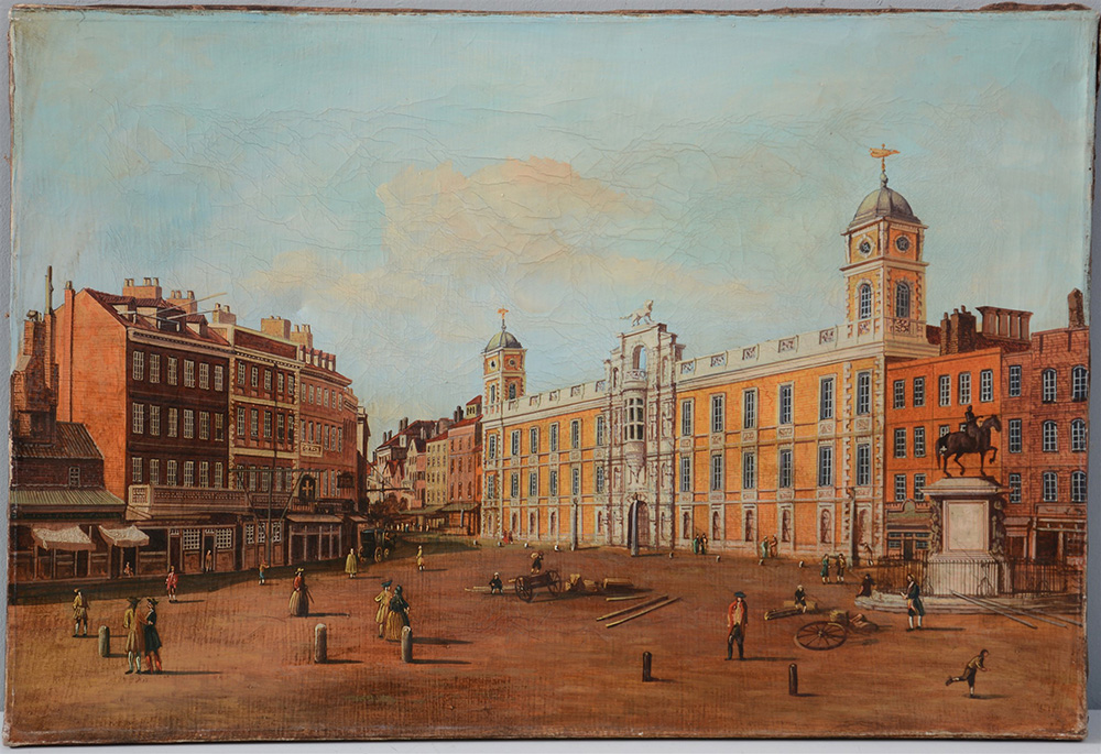 Ignoto "Scorcio di Città " olio su tela (cm 47x70)(difetti)