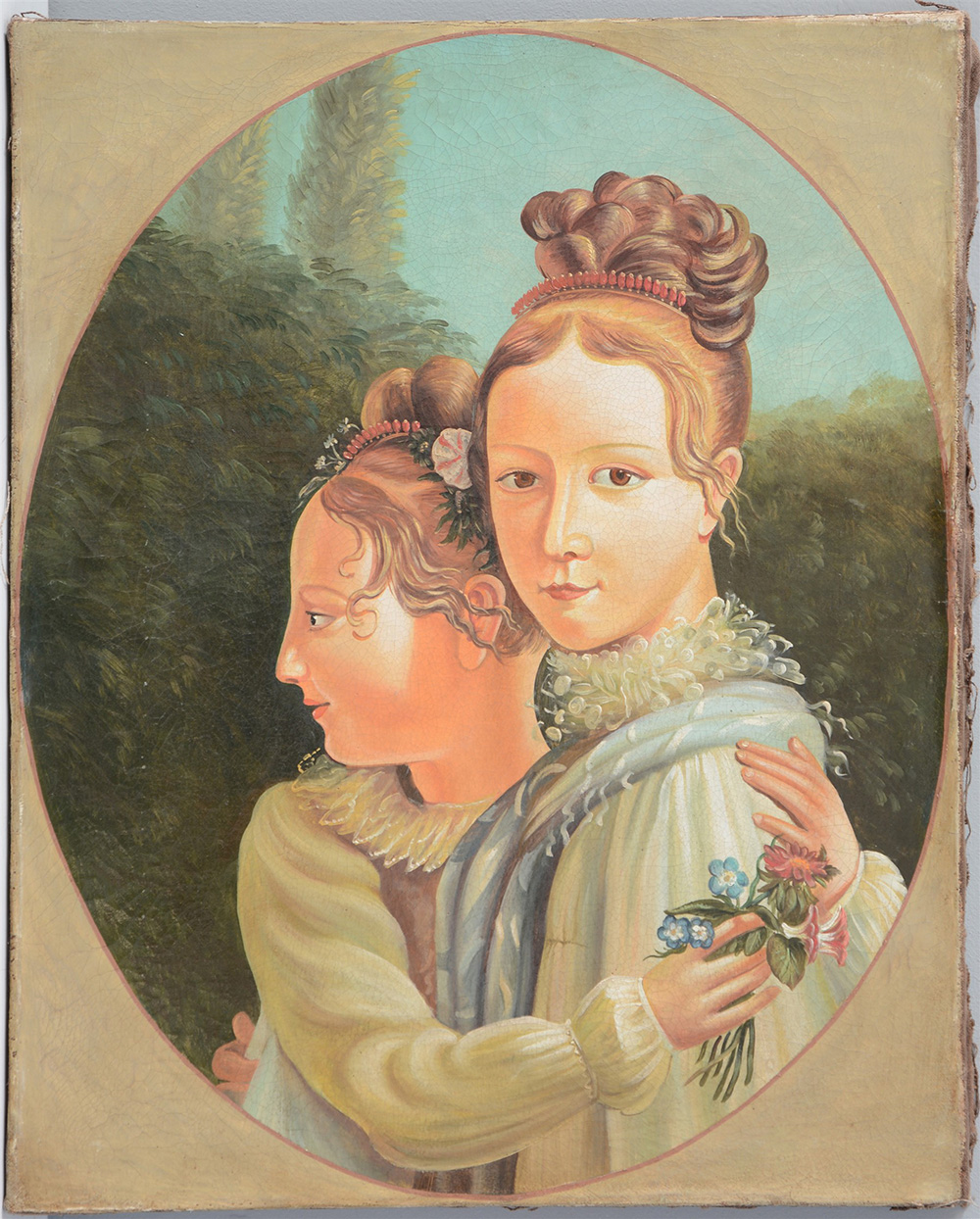 Ignoto "Fanciulle" olio su tela (cm 68x54)(difetti)