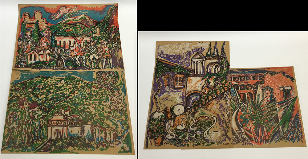 Lotto di quattro litografie su carta marrone firmate Gauli, raffiguranti paesaggi (cm 49x69) (lievi difetti)