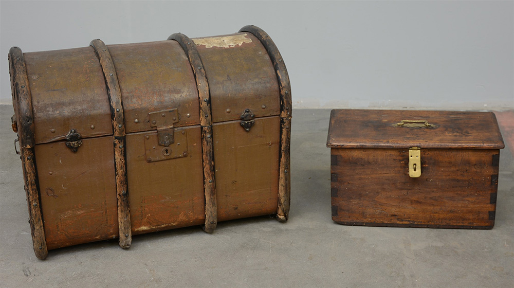Lotto composto da un bauletto a dorso d'asino ed una cassetta (difetti mancanze)