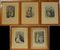 Gruppo di cinque litografie a colori raffiguranti vestiti di moda dell'inizio del secolo XX. In cornici