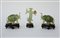 Lotto composto da tre sculture in pietra dura raffiguranti elefanti e figura...