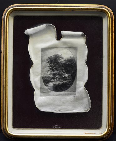 Firma indecifrata "Paesaggio" incisione su pergamena (cm 23x19) firmata in...