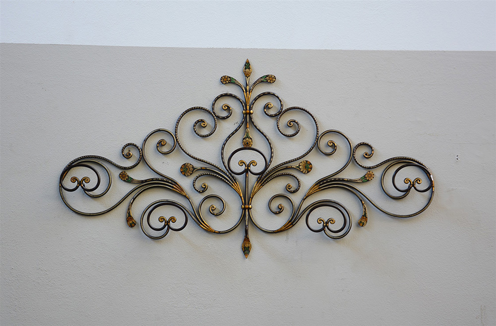 Attaccapanni pensile a cinque grucce in ferro battuto dipinto a motivi floreali (cm 100x60)
