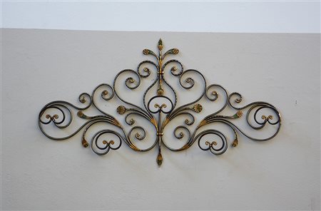 Attaccapanni pensile a cinque grucce in ferro battuto dipinto a motivi...