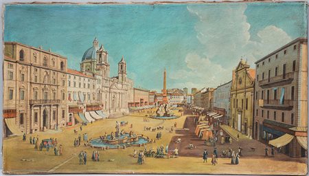 Ignoto "Scorcio di Piazza Navona a Roma" olio su tela (cm 50x90)(difetti)