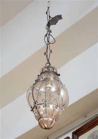 Lampada da portico a una luce in vetro soffiato entro struttura in ferro (h vetro cm 40) (lievi difetti)