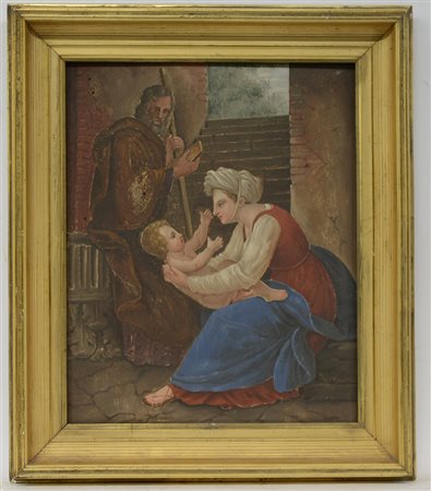 Ignoto "Sacra famiglia" Tecnica mista su tavoletta (cm 39x32) In cornice